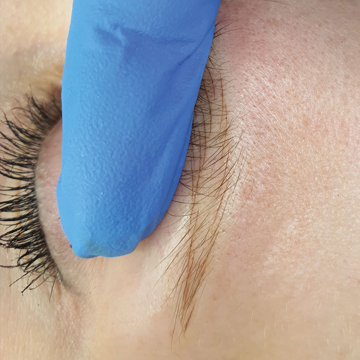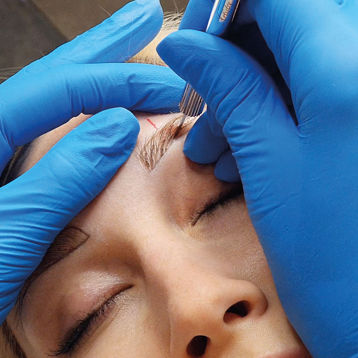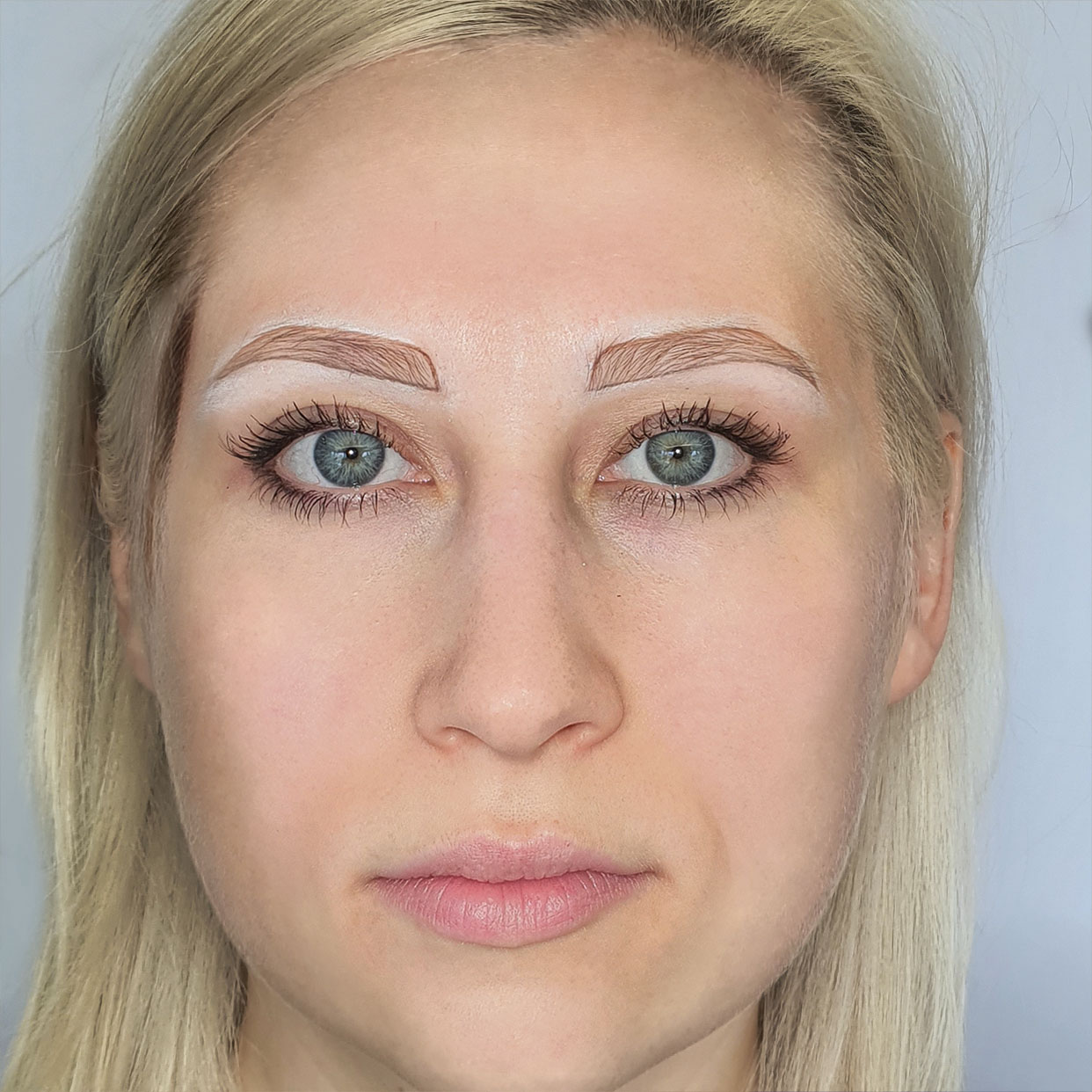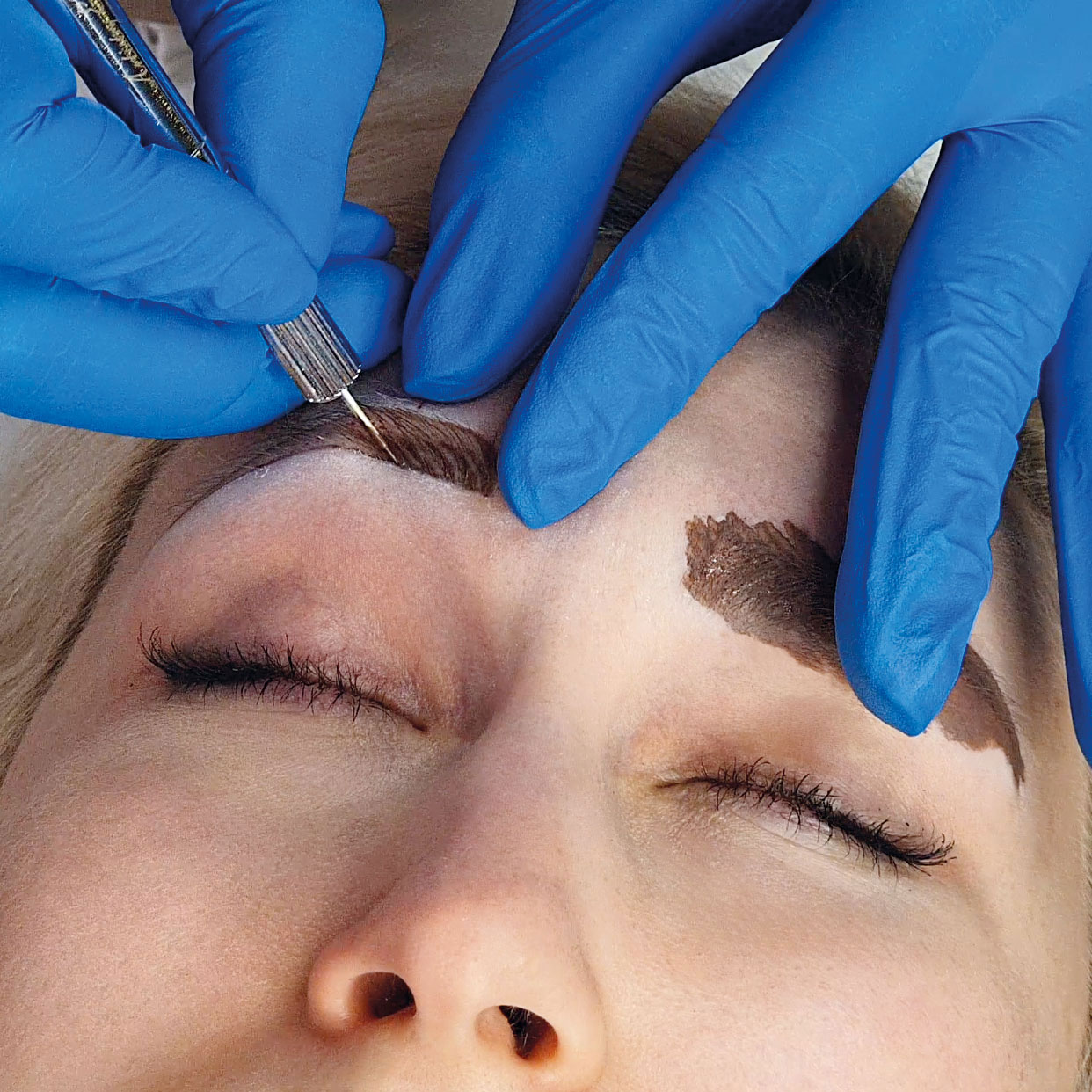 Tetoválás előtt a szemöldök területéről eltávolítjuk a sminket, fertőtlenítjük a bőrt és lefotózzuk az arcot.